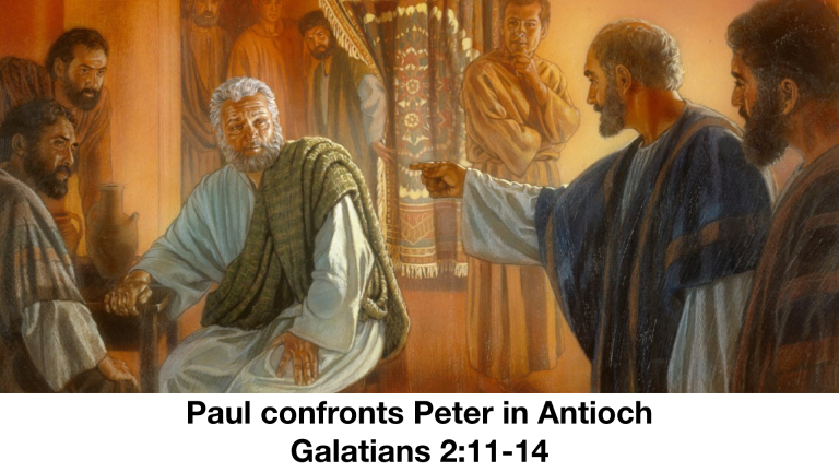 保羅在安提阿當面抵擋 + 責備彼得,因為彼得怕那些堅持割禮的人,就拒絕與外邦基督徒一起吃飯,這是虛偽 + 裝假的行為。